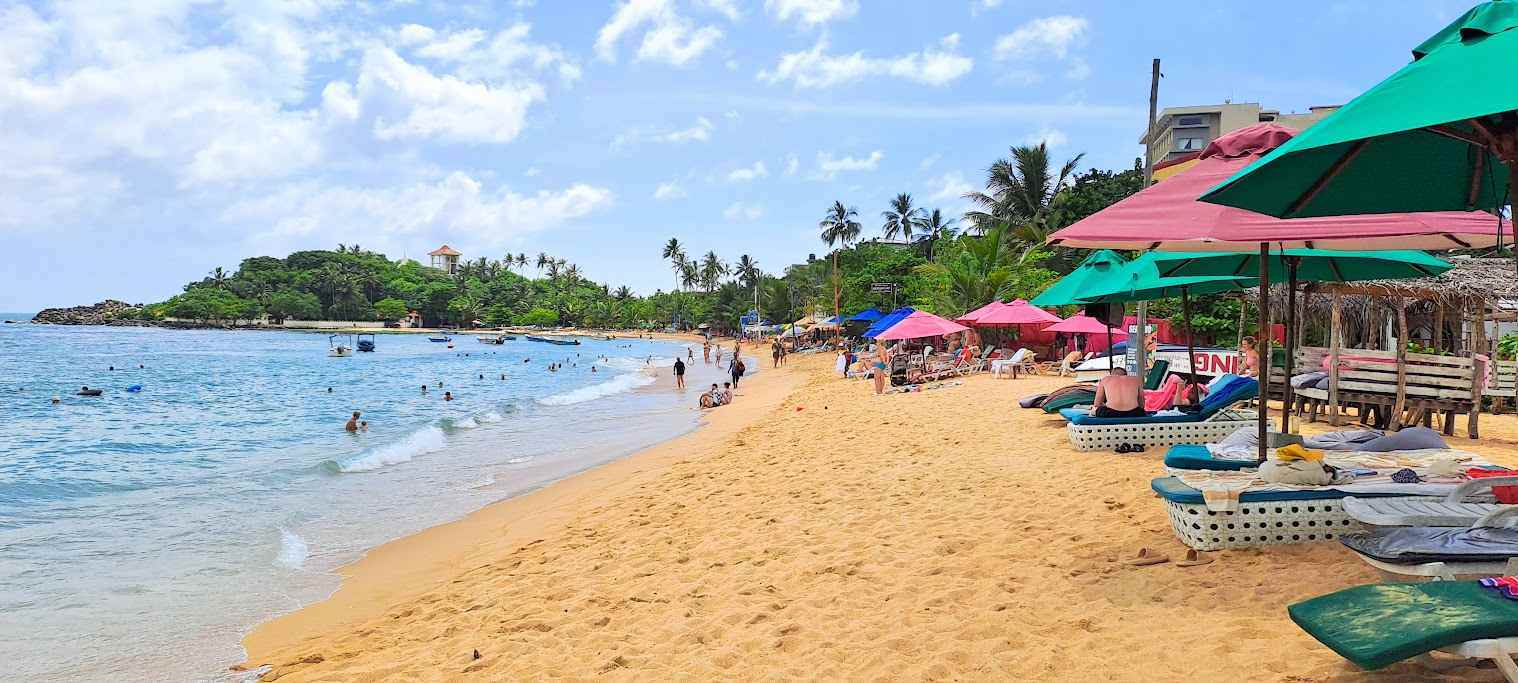 Come to spend some time in Unawtuna Beach One of the biggest tourist destinations & most famous beach in the country, The beach is popular with tourists, and part of the beach is occupied with sun beds,