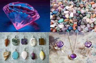 Rubin, Spinell, Amethyst, Saphir, Granat, Rosenquarz, Aquamarin, Turmalin, Achat, Cymophan, Topas, Citrin, Alexandrit, Zirkon, Mondstein